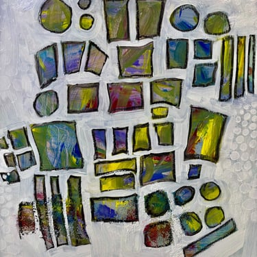 The pandemic hit hard. As a trauma counsellor, I spent four years holding space for people’s pain while the world fell apart. I overworked, I burned out, and my art from that time shows it, the isolation, the exhaustion, but also this desperate reaching for connection. I kept painting through the upheaval, trying to find resilience and hope, not just as ideas but as things I needed to believe in. My practice of simplification became more crucial than ever; a way to impose order on the chaos, to find something solid when everything felt like it was breaking apart. By spring 2024, I’d had enough and retired. That changed everything. Now my art pulls together all the different versions of me - the experimental energy of my twenties, the big ambitious work of my thirties, the vibrant colour of my forties, but the through line has always been this: highly simplified forms as a response to complexity, bringing order to chaos, a recurring practice in the face of a difficult world. For the first time in forever, I have space to breathe. Art isn’t something I squeeze in anymore. It’s just… here.