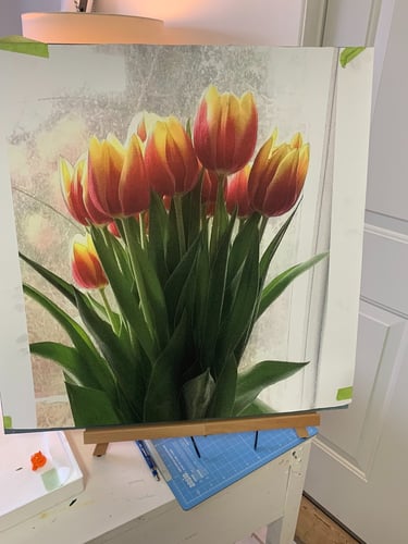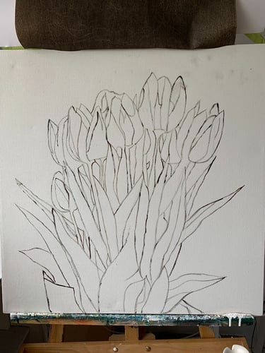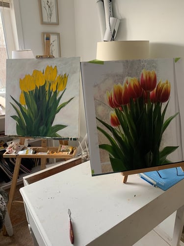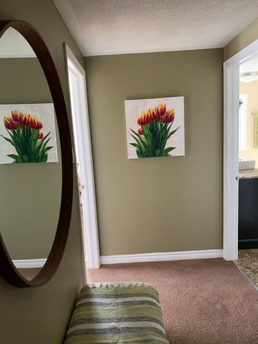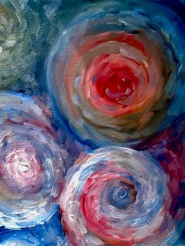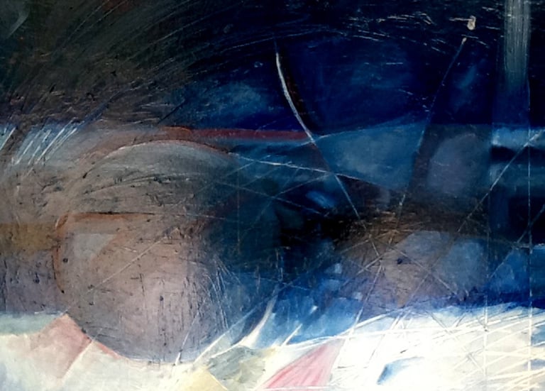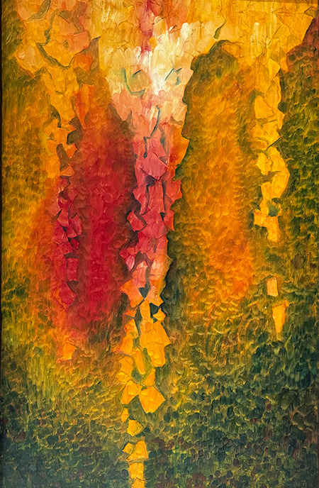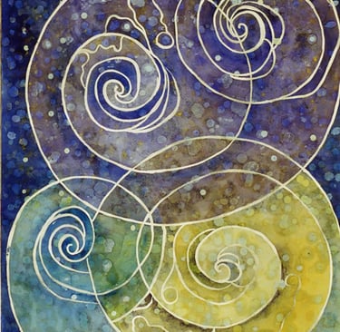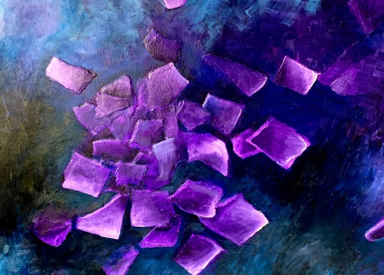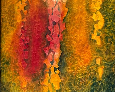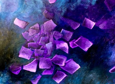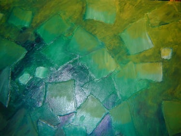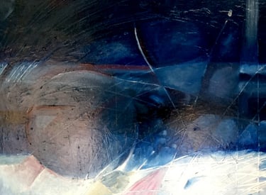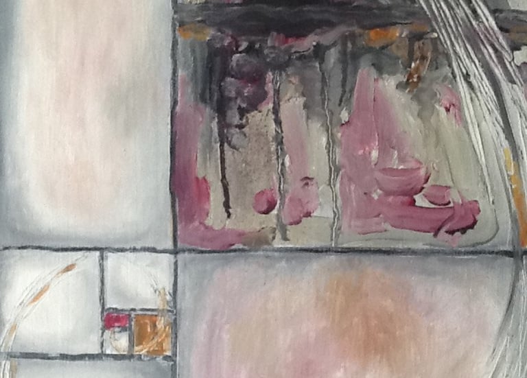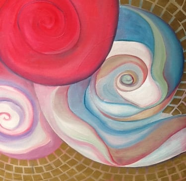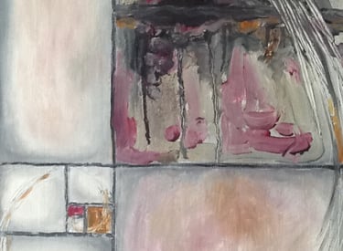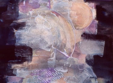 This decade was incredibly full. My canvases got bigger, which made sense because my life was expanding in every direction - three kids, a dog, a husband, and somehow I was also doing a Master’s in theology that would lead me toward my Psychotherapy certification. The post-9/11 world weighed heavily on me, all that anxiety and uncertainty as Canada got involved in Afghanistan. Those larger paintings became a way to work through the collective unease I was feeling, along with the big questions about meaning, spirituality, and human psychology I was wrestling with in my studies. My art became where everything came together - the personal, the spiritual, the political. My commitment to simplification deepened here - these large canvases held complex emotions, but I expressed them through highly simplified forms, bringing a degree of order to the chaos swirling around and within me.